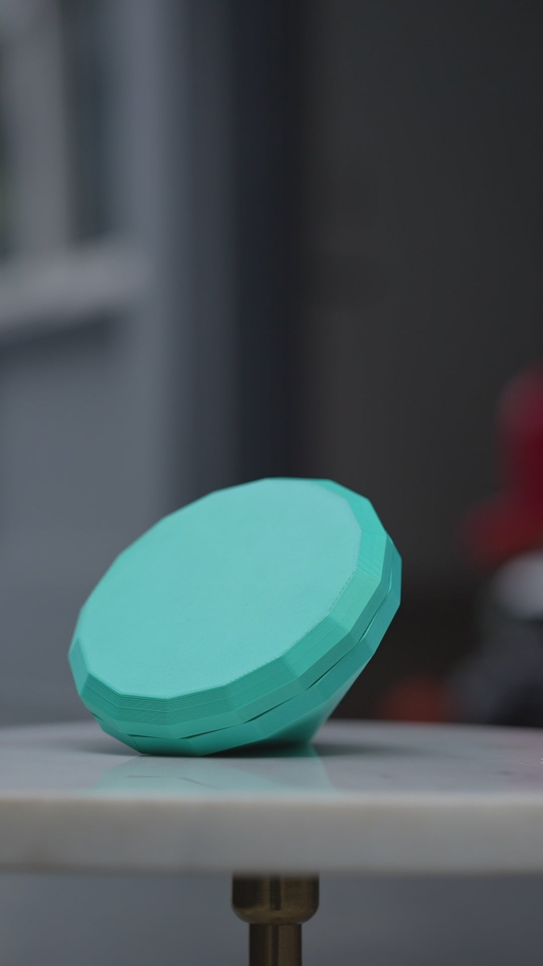 Turn heads before it’s even opened with this stunning 3D printed jewel box shaped like a faceted diamond. Designed to look like a cut gemstone, this container is the perfect blend of elegance and modern design — making it a true gem for your dresser, vanity, or gift table.